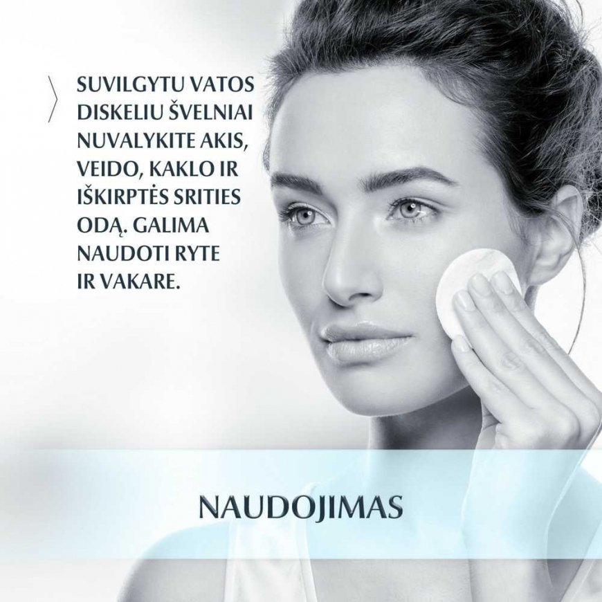 Eucerin DermatoCLEAN [HYALURON] micelinis vanduo 3 in 1 švelniai, bet efektyviai pašalina nešvarumus ir veido bei akių makiažą neišsausindamas odos.