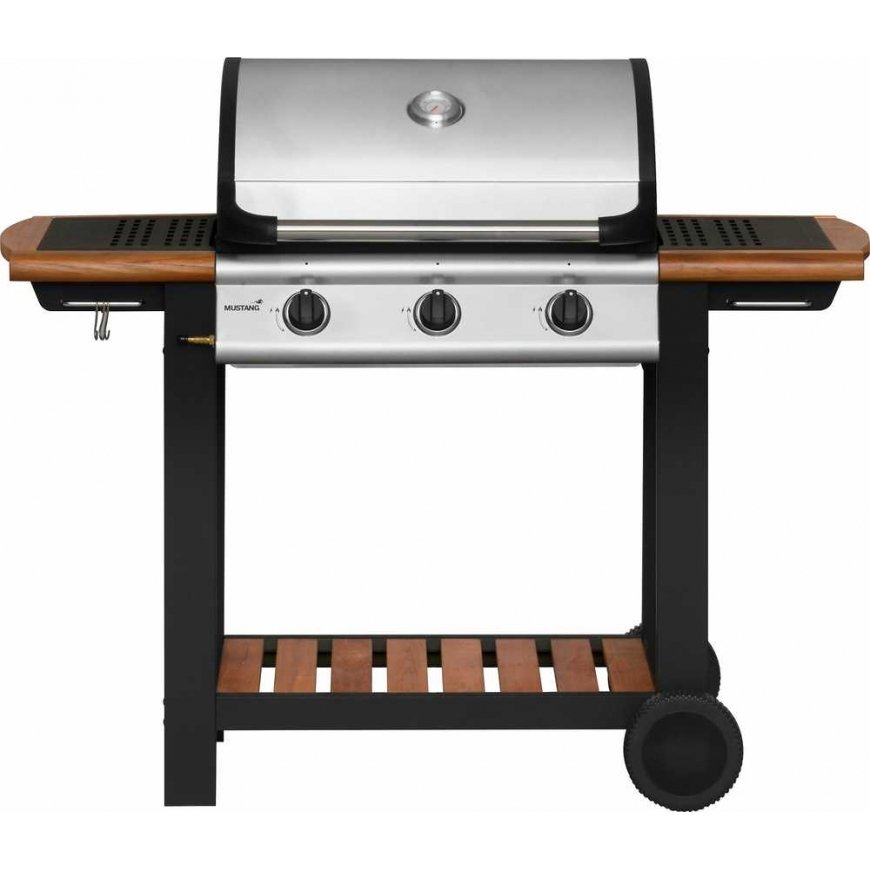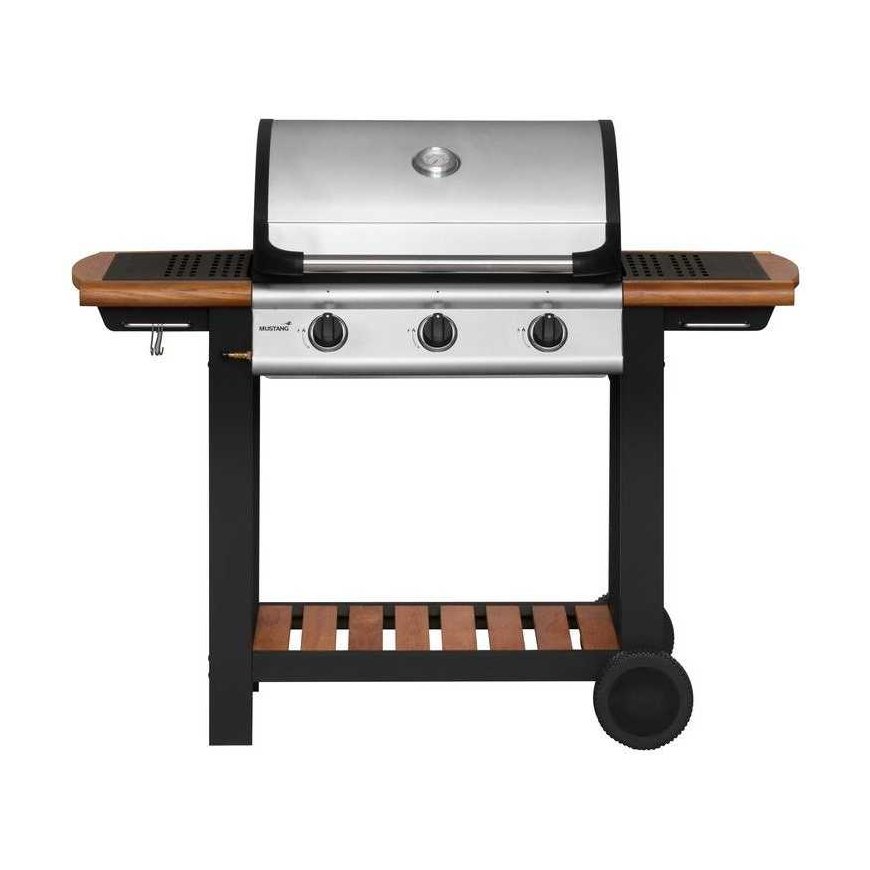 Įspūdingos ir stabilios 3 degiklių dujinės kepsninės. Degikliai iš ketaus. Bendra galia 10,5 kW. Pjezo uždegimas integruotas kiekvienoje valdymo rankenėlėje. Kepimo plotas 63 x 41 cm. Grilio grotelės 31 x 41 cm ir kepimo plokštė 31 x 41 cm yra pagamintos iš matinio emaliuoto ketaus. Šildymo lentyna iš chromuotos vielos plieno 63 x 14 cm. Medinės kepsninės dalys pagamintos iš atsakingai užaugintos medienos. 2 vnt liepsnos slopintuvai, pagaminti iš aliuminiu dengto plieno. Pjezo uždegimas integruotas į kiekvieną valdymo rankenėlę. Dangtis ir valdymo pultas iš 430 nerūdijančio plieno. Rėmas pagamintas iš milteliniu būdu dažyto plieno. Po židiniu yra cinkuotas riebalų padėklas. 2 vnt dideli ratai palengvina grotelių valdymą.
