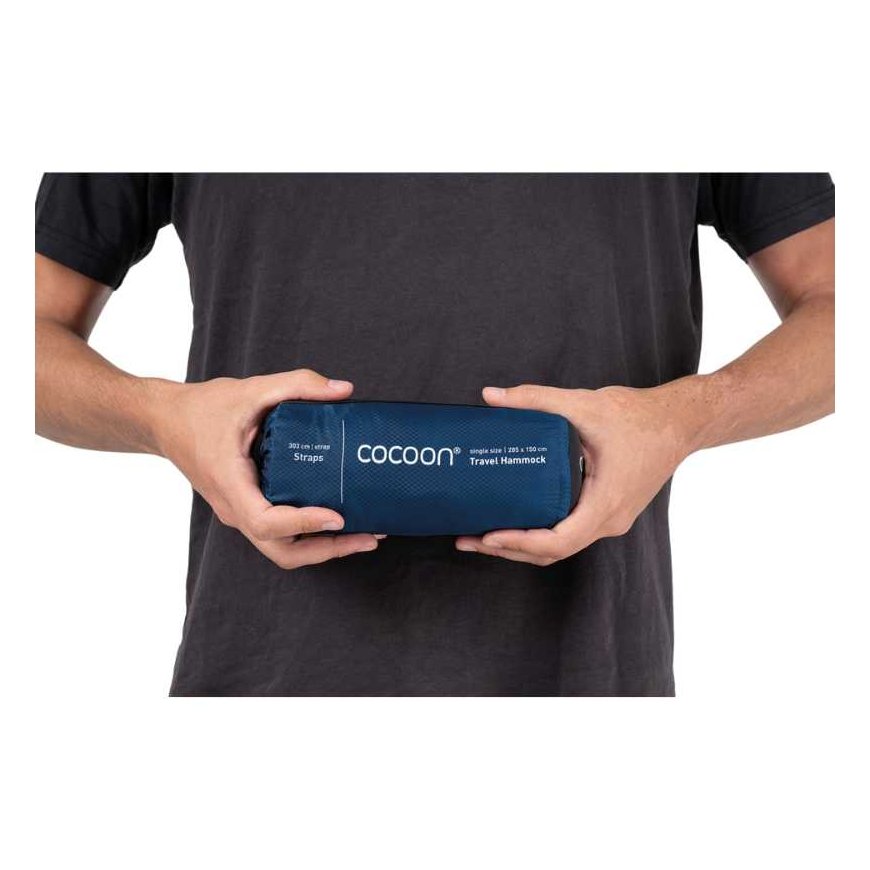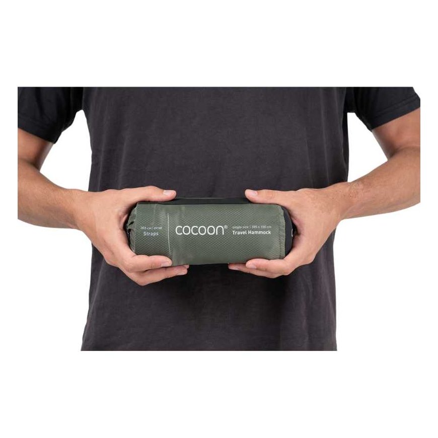 Patogus ir itin tvirtas hamakas Cocoon „Travel Hammock Single“ Jūsų kelionėms,  parduodamas komplekte kartu su pakabinimo diržais ir karabinais.