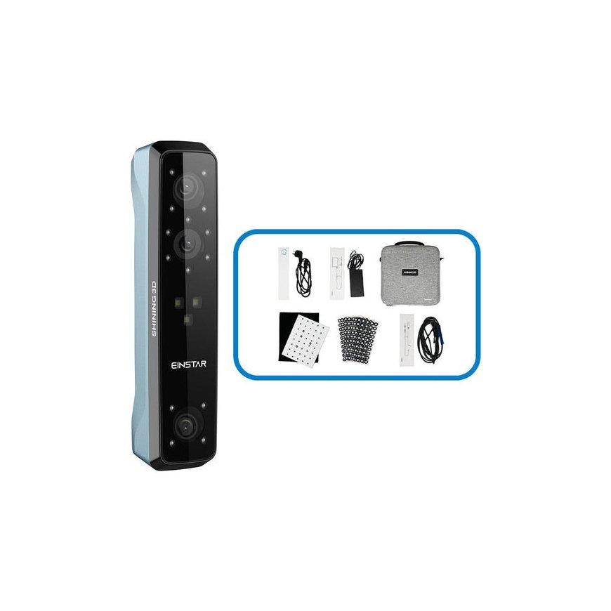 3D skeneris – Shinning 3D Einstar yra įrankis, kuris neskleidžia matomos šviesos, todėl juo galima nuskaityti ir žmonių veidus. Ergonomiška konstrukcija leidžia atlikti matavimus labai patogiai, o USB jungtis, vienu metu naudojama duomenų perdavimui ir maitinimui, sumažina reikalingų sąsajų ir laidų skaičių.