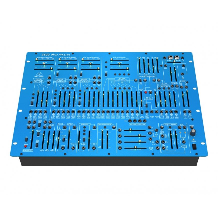 Behringer 2600 BLUE MARVIN – specialaus leidimo pusiau modulinis analoginis sintezatorius su 3 VCO, kelių režimų VCF ir spyruokliniu aidėjimu 8U stelažų formatu.Aštuntasis dešimtmetis buvo laikas, kai sintezatoriai vis tobulėjo, nes vis daugiau muzikantų naudojosi instrumentu ir kūrė muziką, kurios niekas anksčiau nebuvo girdėjęs. Ankstesni sintezatoriai buvo didžiuliai ir sudėtingi įrenginiai, kainavę tūkstančius dolerių, tačiau 1971 m. Alanas R. Pearlmanas ir Dennisas Colinas siekė sukurti nešiojamesnę savo didžiulio ARP 2500 modulinio sintezatoriaus versiją, kurią būtų galima naudoti koncertinėje aplinkoje ir kuri būtų prieinama. Iš šios koncepcijos atsirado pusiau modulinis sintezatorius ARP 2600, kuris akimirksniu tapo hitu ir buvo labai šiltai priimtas daugelio žinomų muzikantų, įskaitant Edgarą Winterį, Pete'ą Townshendą, Herbie'į Hancocką ir Jeaną-Michelį Jarre'ą.Itin prieinamas ir dar daugiau funkcijų turintis Behringer 2600 yra duoklė šiam ikoniškam sintezatoriui. Neįtikėtinai subtiliai ir lengvai užburkite beveik bet kokį įsivaizduojamą garsą. Visiškai analoginis signalo kelias pagrįstas autentiška 1970-ųjų ARP 2600 grandine su suporuotais tranzistoriais ir JFET. Turėti 2600 yra tarsi istorijos dalis, leidžianti atkurti nesenstančią klasiką arba formuoti savo muzikinį kelią.Pagrindinės savybės:Nuostabus analoginis sintezatorius su trigubu VCO dizainu leidžia sukurti neįtikėtinai riebius garsusAutentiškas itin retų aštuntojo dešimtmečio Arp Blue Marvin* grandinių atkūrimas su suderintais tranzistoriais ir JFETPusiau modulinės architektūros nereikia pataisyti, kad rezultatai būtų tiesioginiai3 VCO, kiekvienas su LFO režimu, FM įėjimais ir išėjimais Su skirtingomis bangų formomis, suteikiančia didžiulę tonų galimybių paletę.Daugiamodis VCF su specialiu žemųjų dažnių filtro išėjimu su papildoma perjungiama aukšto/įpjovos išvestimiNeįtikėtinas modulių asortimentas, įskaitant žiedinį moduliatorių, delsos procesorių, pavyzdį ir amp; laikymas, Schmitt trigeris ir voko sekimasADSR ir AR apvalkalo generatoriai su perjungiamu laiko koeficientuĮrengtas mechaninis spyruoklinis aidėjimas įkvepiantiems garso efektamsTriukšmo generatorius su sklandžiu "spalvos" keitimu2 tam skirti LFO su impulsiniais ir sinusiniais išėjimaisĮtampos procesoriuje perjungiamas pofiltras (PFD) / keitiklisDiferencinis (+/-) VCA įėjimas su tiesiniais ir eksponentiniais valdymo įėjimaisPapildomos funkcijos apima slopintuvą, maišytuvą, keitiklį, sukimosi greičio ribotuvą ir 4 krypčių tankintuvą, kad būtų galima kūrybiškai pataisyti.Išorinė garso įvestis, skirta apdoroti išorinius garso šaltinius58 slankikliai ir 15 mygtukų suteikia tiesioginę prieigą prie visų parametrų realiuoju laiku83 pataisomi įėjimai / išėjimai maksimaliam konfigūracijos lankstumui užtikrintiDidelės galios ausinių išvestis su lygio valdymuIšsamus MIDI diegimas su MIDI kanalo ir balso prioriteto pasirinkimu