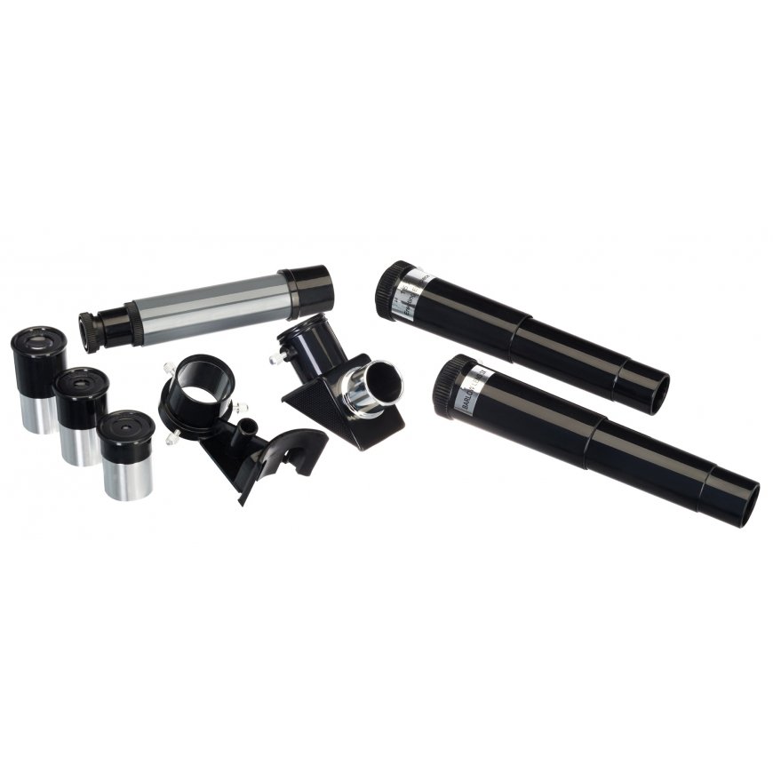| Pakuočių kiekis | Telescope optical tube; 4mm eyepiece; 12.5mm eyepiece; 20mm eyepiece; 1.5x erecting eyepiece; 3x Barlow lens; 90° diagonal mirror; Finder 5x24; Azimuth mount; Aluminum tripod with an accessory tray; User manual and lifetime warranty |