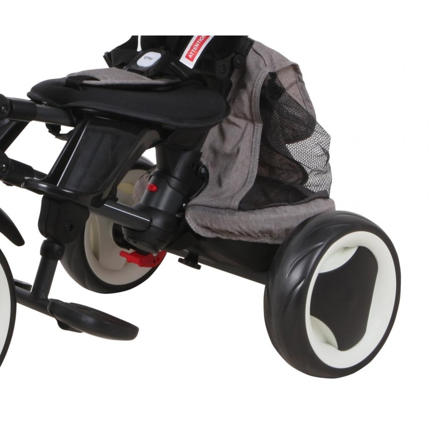 Vaikiška triratė transporto priemonė RITO PLUS sukurta galvojant apie kūdikių patogumą ir saugumą bei tėvų komfortą. RITO PLUS yra stabili ir saugi, pasižymi modernia konstrukcija ir patogia profiliuota sėdyne. Transporto priemonėje sumontuotas vaiką nuo iškritimo apsaugantis barjeras, penkių taškų saugos diržai ir kojų atramos, o putplasčio ratukai užtikrina tylią ir patogią kelionę. Nusukus rankeną, barjerus, stogelį ir sėdynės užvalkalą, RITO PLUS taps klasikinė triratė transporto priemonė. Naudojantis laisvo rato ir vairo“ funkcija, vaikas gali laisvai minti pedalus ir sukti vairą, o tėvas visiškai kontroliuoti važiavimo kryptį ir greitį. Metalinės konstrukcijos, putplasčio EVA ratukų ir iš kokybiškų plastikų pagamintų elementų derinys garantuoja tvirtumą ir patogumą. Transporto priemonė priklauso produktų šeimai GROW UP – auga kartu su vaiku. PRODUKTO SAVYBĖS: