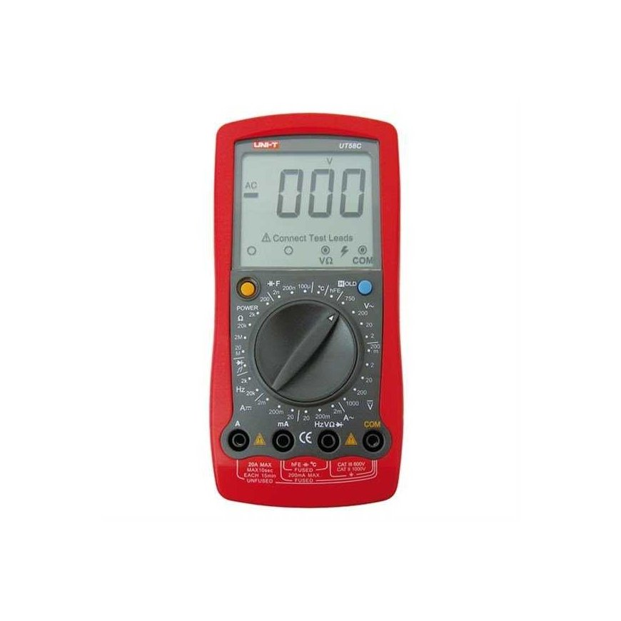 Mokėjimai 5x10.32€UT-58C yra universaliu skaitmeniniu matuokliu skirtu įtampos, elektros srovės, varžos, indukcijos, talpos, HFe matavimui ir diodų tinkamo veikimo patikrinimui.