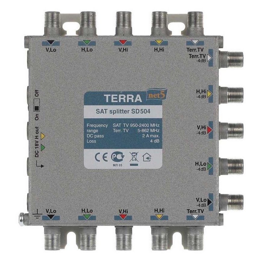 Mokėjimai 5x13.80€| Dažnių diapazonas : | 950 ... 2400 MHz - SAT, 5 ... 862 MHz - TV |