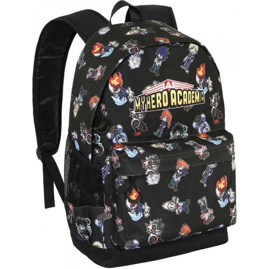 Size: 44x32x17cm. One compartment urban backpack, made of recycled high resistance material (RPET). Liquid repellent outer body with front pocket and side mesh pocket. Interior lining with padded pocket for electronic devices. Reinforced shoulder straps and back trolley strap.