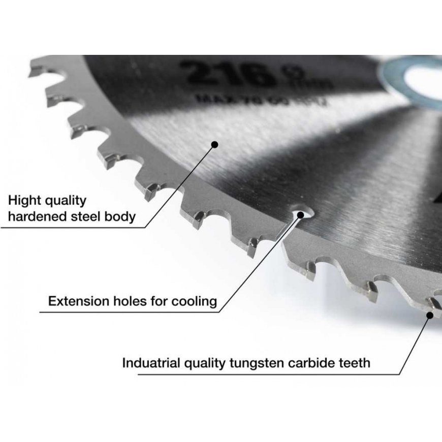 Dantukai:• Tiesiai pritvirtinti dantukai – didesnis patvarumas.• Pramoninės klasės karbido dantys – ilgiau išliekantis aštrumas.Forma ir konstrukcija:• Papildomai subalansuotas korpusas – tikslus pjovimas.• Aukštos kokybės grūdintas plienas.• Pletimosi angos aušinimui.Išrankis naudojamas:• Įvairios medienos pjovimui.