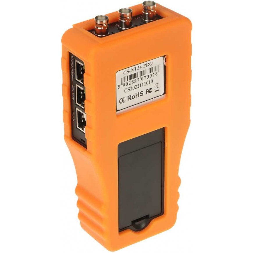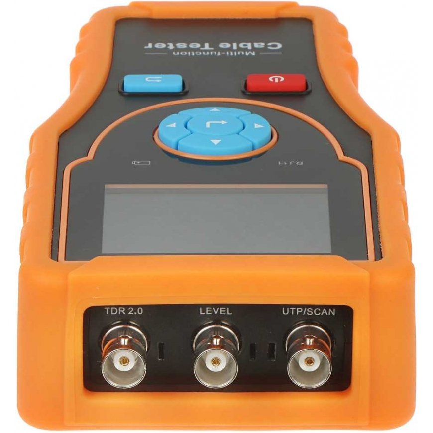 | Pagrindinės savybės : | 2.4 " LCD displėjus - 320 x 240 px Kabelio testas ir kabelio sekimas : kabelio tipas, UTP kabelio seka ir tipų testas, RJ45 jungties gedimas Test TDR - RJ45 : poros būsena, ilgis, slopinimas, atspindėjimas, impedansas, iškraipymas - Kabelio ilgis max. 180 m Test TDR 2.0 : Linijos gedimo taško paieška - Kabelio ilgis max. 1200 m, Įmontuoto jungiklio prievado suradimas Test PING : teisingas IP kameros Ethernet prievado veikimas, teisingas IP adresas IP nuskaitymas Tinklo prievado ir duplex režimo identifikavimas Laido identifikavimas laidų pluošte Telefono linijos būklės aptikimas Nutraukimo vietos arba laido trumpojo sujungimo ieškojimas ir nustatymas HD bendraašio vaizdo lygio matuoklis Automatinis išjungimas : 10 ... 120 minučių |