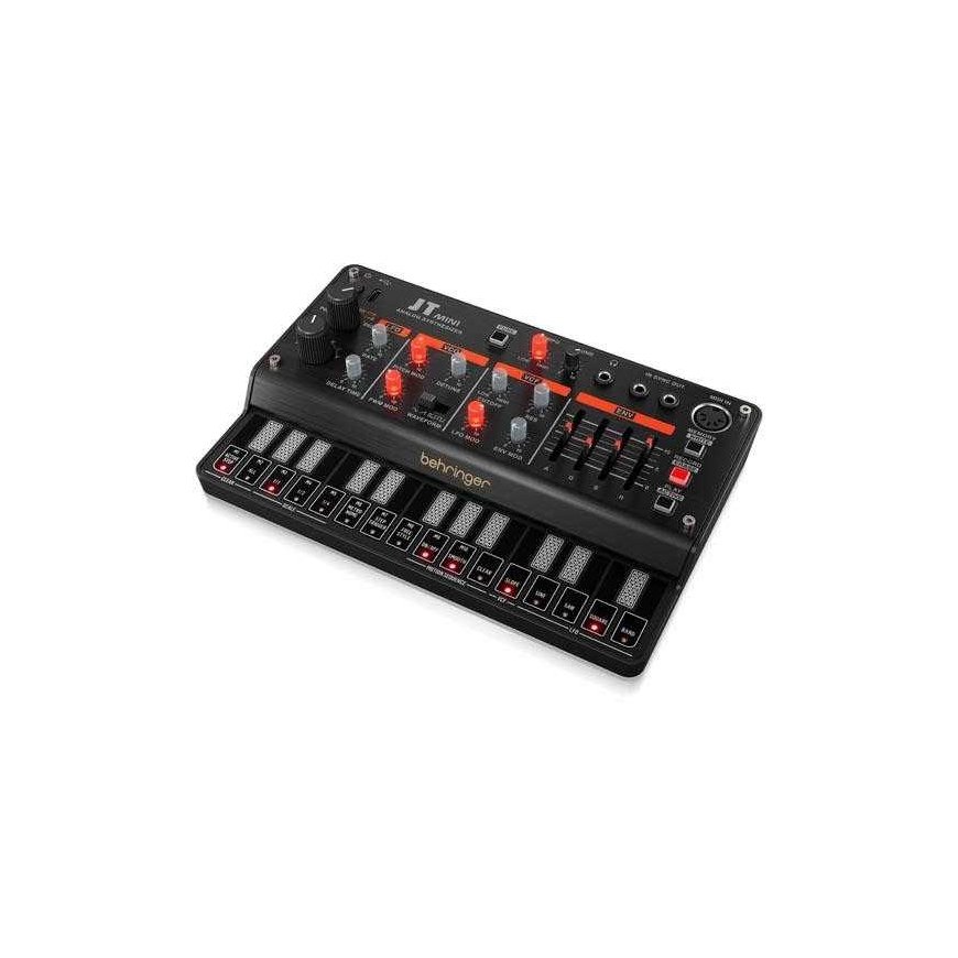 Mokėjimai 5x23.80€„Behringer JT MINI“ – nešiojamas analoginis polifoninis sintezatorius su 3 VCO, daugiarežimiu VCF filtru, arpedžiotuvu ir 16 žingsnių sekvenceriu. Pagrindinės savybės: programuojamas polifoninis analoginis sintezatorius; dizainas įkvėptas klasikinio „Jupiter“ modelio iš 80-ųjų; 27 lietimui jautrūs klavišai; pilnai analoginis garso kelias, pagrįstas autentiškais VCO, VCF ir VCA sprendimais; VCO osciliatorius su 4 perjungiamais bangos formos režimais: „Saw“ / „Triangle“ / „Square“ / „Pulse“; impulsų pločio moduliacija siūlo papildomą garsinę paletę; klasikinis filtras su keliais režimais ir rezonanso valdymu; 16 žingsnių sekvenceris su 8 atminties lizdais ir galimybe išsaugoti rankenėlių judesius; LFO filtras su „Saw“ / „Triangle“ / „Square“ / atsitiktinės formos režimais vibrato, tremolo ir vokų filtro (wah) efektams; VCA su specialiai sukurtu ADSR filtru; USB C tipo jungtis maitinimui iš kompiuterio, išmaniojo telefono ar išorinės baterijos; sinchronizavimo įvesties ir išvesties jungtys sinchronizavimui su kitais instrumentais; pilnas MIDI įdiegimas (įskaitant CC valdymą, visus galimus parametrus ir LOAD/SAVE funkcijas).