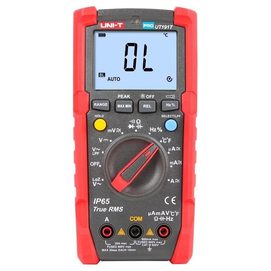 Mokėjimai 5x19.80€UT-191T yra universalus skaitmeninis matuoklis skirtas matuoti: įtampą, srovę, varžą, talpą, dažnį, temperatūrą ir patikrinti ar diodai veikia tinkamai..