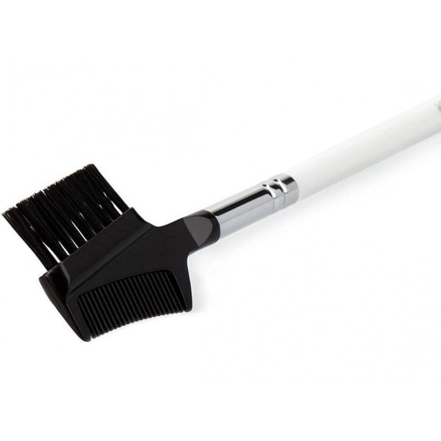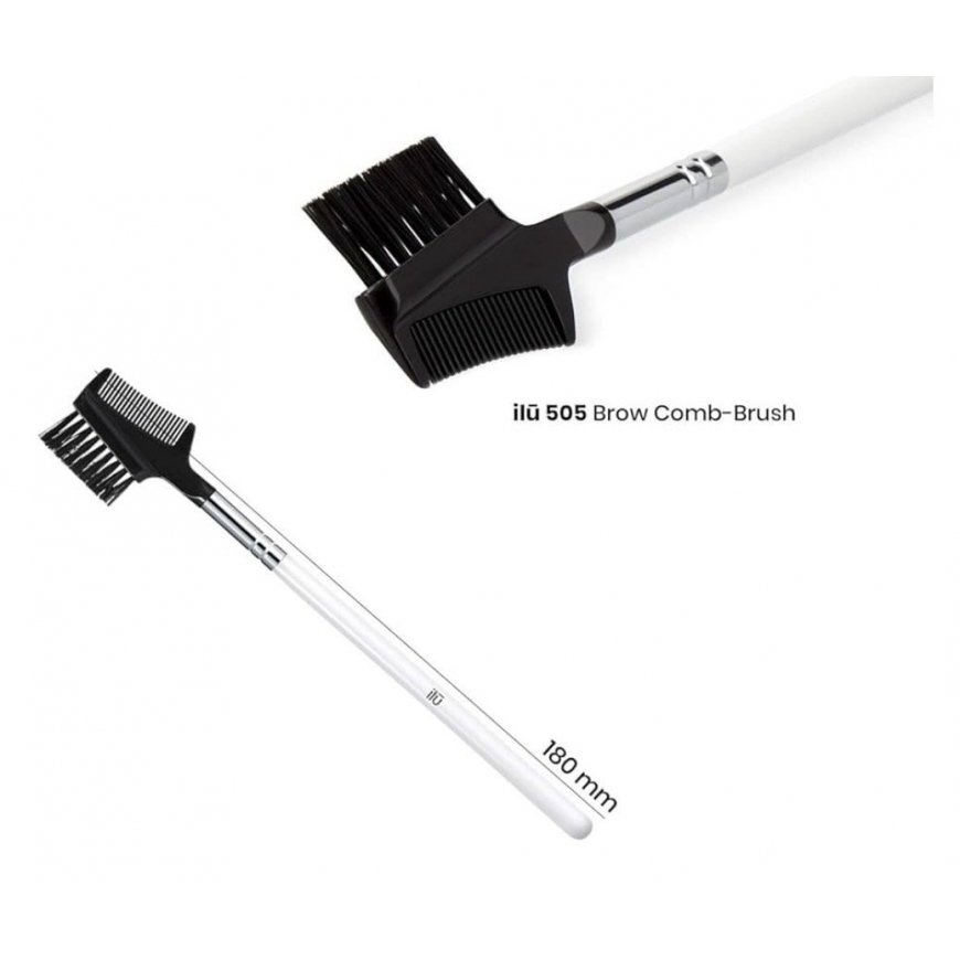 ILU 505 is a dual-ended brush for shaping and separating brows. Made from soft synthetic taklon fibers, suitable for sensitive skin. Features an ergonomic enamelled wooden handle with a silver copper cap. Scratch-resistant, easy to clean, 180mm long.