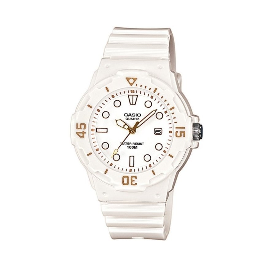 watch Casio LRW-200H-7E2VDF Product description: • Brand: Casio • Movement: Quartz • Dial: Analog • And: Luminous • Functions: Date display days of the month • Case: High-quality, durable Plastic • Crystal: acrylic • Strap: Waterproof polypropylene • WATER RESISTANCE: 10 bar • Hypoallergenic: Yes — nickel-free — excellent for allergy sufferers • authenticity: on caseback watch has engraved and from manufacturer, confirming authenticity • Case: 32 • Dial: 22 • Thickness: 11.7 • Strap width: 14 • Wrist circumference: 130-200 Colorway: • Case: white • Dial: white • hour markers: white, luminescence • Hands: gold, luminescence • Second hand: gold, luminescence • Strap: white