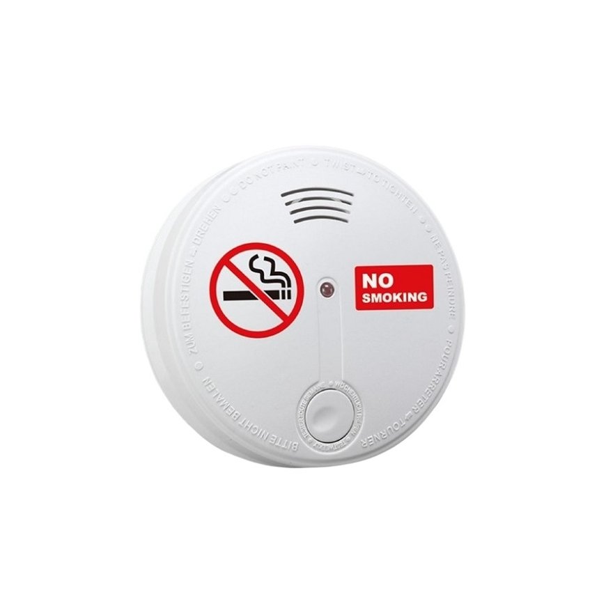 TUYA bevielis fotoelektrinis cigarečių dūmų detektorius, Wi-FiCigarečių dūmų detektorius – tai patikimas sprendimas siekiant užtikrinti saugią ir sveiką ugdymo aplinką. Įrenginys greitai ir tiksliai aptinka cigarečių bei kaitinamojo tabako dūmus, todėl padeda efektyviai kontroliuoti jų vartojimą mokyklų patalpose. Integruota Tuya/SmartLife programėlė leidžia administracijai realiu laiku gauti pranešimus apie pažeidimus, stebėti rodmenis ir užtikrinti prevencinę kontrolę be nuolatinės fizinės priežiūros. Tvirtinamas prie lubų klasėse, tualetuose, koridoriuose ar kitose jautriose erdvėse, šis įrenginys tampa prevencijos priemone, mažinančia riziką, kad mokiniai naudos draudžiamus produktus ugdymo įstaigoje. Ypatybės: Išmanusis bevielis dūmų detektorius su fotoelektriniu jutikliu, kuris anksti aptinka cigarečių dūmus iš bet kurios pusės. Įrenginys paleidžia optinį ir garsinį signalą, o Wi-Fi tinklu per TUYA programėlę siunčia perspėjimo žinutes. Dūmų detektorius gali būti sujungiamas ir konfigūruojamas tiesiai per išmaniąją programėlę Tuya Smart ar Smart Life. Naudodami testavimo mygtuką, kas savaitę galite patikrinti, ar prietaisas veikia gerai. Nutildymo funkcija: jei pavojaus signalas klaidingas, galite jį laikinai nutildyti. Labai patogus ir paprastas naudojimas! Lengvas ir mažas, pasižymi mažomis energijos sąnaudomis. Rekomenduojama detektorių tvirtinti ant lubų ties patalpos viduriu, kad efektyviau aptikti dūmus, 30cm atstumu nuo šviestuvų ir >15cm nuo sienų ir kampų. Įrenginys gali būti naudojamas mokyklose, biuruose, bendrabučiuose, viešose erdvėse ir kitose patalpose, kur svarbu užtikrinti švarų orą ir draudžiamų dūmų kontrolę. Techniniai duomenys: Sensoriaus tipas: fotoelektrinis. Įtampa: 9V DC. Sensoriaus jautrumas: 0.1-0.2dB/m. Garsinis aliarmas: >85dB@3m. Šviesos aliarmas: raudonas LED. Budėjimo srovė: <15uA. Aliarmo srovė: <200uA. Programėlė: Tuya Smart / Smart Life (Android / iOS). Testavimo/ nutildymo mygtukas: yra. Senkančios baterijos signalas: yra. Darbinė temperatūra: 0°C~+50°C. Darbinė drėgmė: 10-90 % (nekondensuoja). Išmatavimai: Ø107mm x 35mm. Montavimas: prie lubų. Svoris: 85g. Spalva: balta. Garantija: 24 mėn.Išsamią informaciją rasite vartotojo vadove, kurį galite atsisiųsti čia: http://gofile.me/2xtvT/zRVvy6nMk