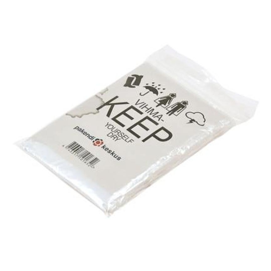 Permatomas lietaus apsiaustas, patogus naudoti ir išlaiko drabužius sausus lietuje.