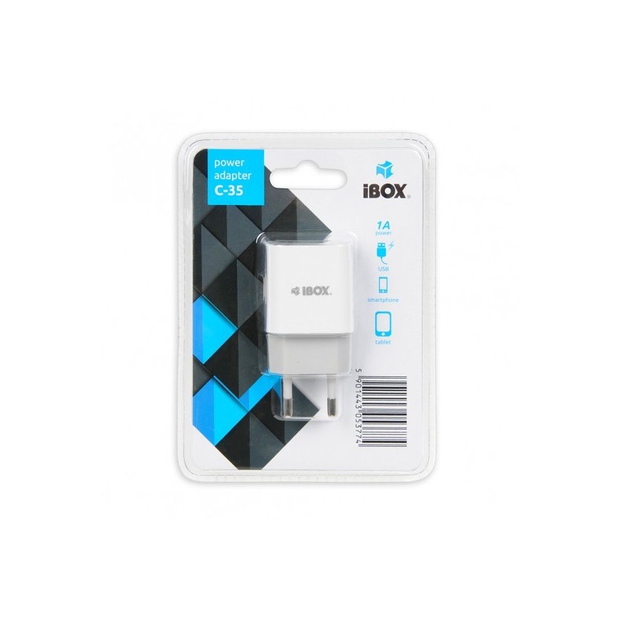 iBox C-35. Įkroviklio tipas: Vidaus, Maitinimo šaltinio tipas: AC, Įkroviklio suderinamumas: Universalus. Įėjimo įtampa: 100 - 240 V, Išvesties įtampa (maks.): 5 V, AC adapterio išėjimo srovė: 0,3 A. USB 2.0 portų kiekis: 1. Produkto spalva: Balta