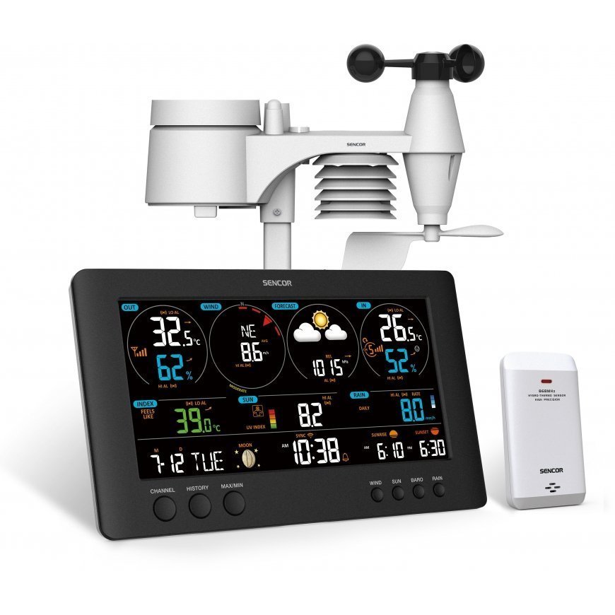 Iekļauts 7in1 sensors: vēja ātrums, vēja virziens, nokrišņi, temperatūra, mitrums, UV un gaismas intensitāte