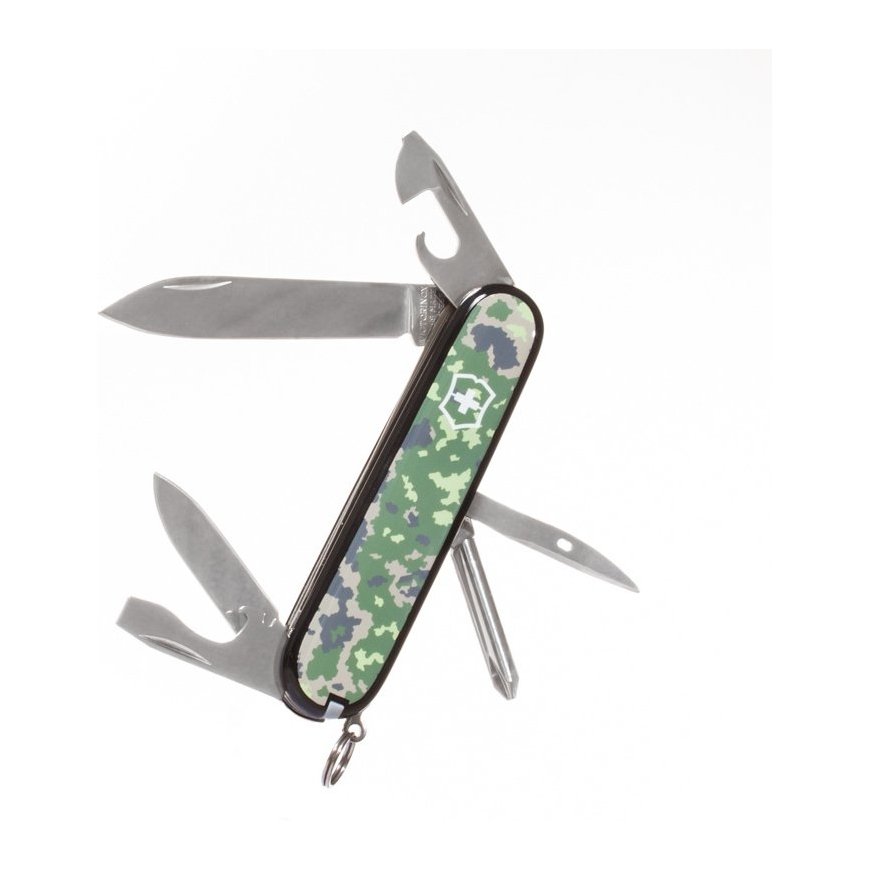 The Victorinox Hiker M05 multi-tool is a multi-purpose tool for a hiker's small chores. The knife has the most essential features in one package. The shells have an exact copy of the M05 terrain pattern of the Finnish Defense Forces. The link knife has 13 functions and due to its size, it fits conveniently in a pocket.