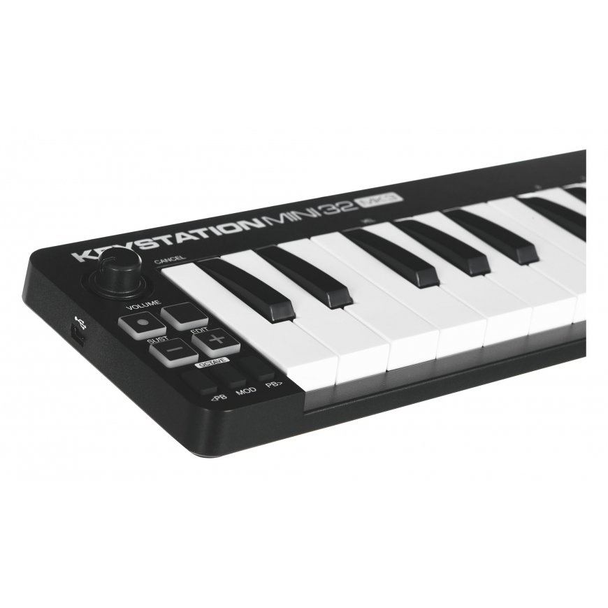 Lightweight and mobile, the Keystation Mini 32 is perfect for musicians on the go who want to control their music software during live performances, or producers who want to add an intuitive MIDI controller to their studio that takes up little space. Keystation Mini 32 is USB powered and supports USB-MIDI connections. In addition, the Keystation Mini 32 supports iOS connectivity with the Apple iPad Camera Connection Kit (sold separately), so you can play and create with audio apps on the iPad and other iOS devices.