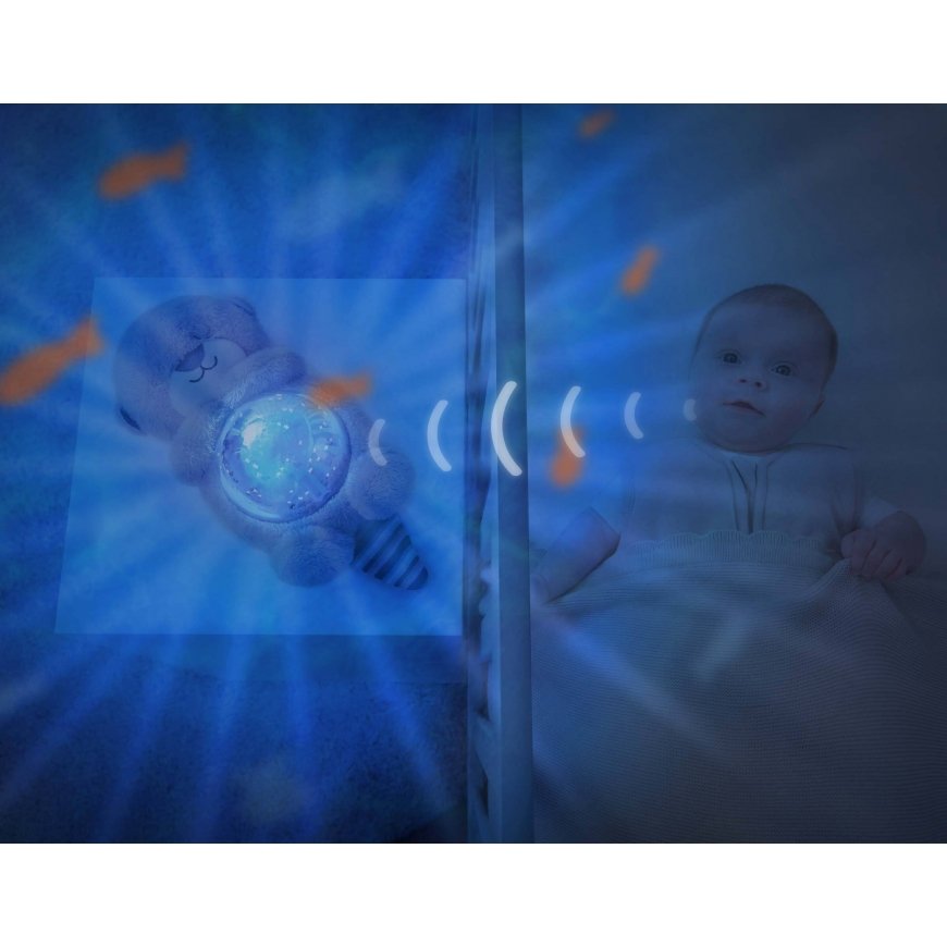 Zazu Otto the Otter transforms the Children's Room into a magical underwater world where waves move and fish swim around the ceiling of the room. The otter also combines the reflection with the soothing sound of the sea, which eventually lulls the little one to sleep. The three-phase program gradually reduces the effects and switches off automatically after 30 minutes. Responding to crying at night, Zazu Otto the Otter soothes the baby with the sounds of the sea, heartbeat or lullabies.