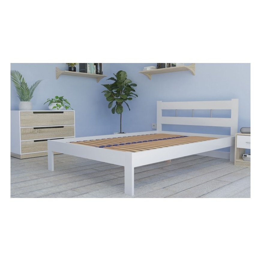 STELAŻ DO ŁÓŻKA BED 140x200WYMIARY OGÓLNE STELAŻA:Długość [cm]: 200Szerokość [cm]: 140Odległość między listwami [cm]: 4,6WYMIARY POJEDYNCZEJ LISTWY:Szerokość [cm] : 5,3Grubość [cm] : 0,8Długość [cm] : 66 Stelaż zbudowany jest złobnie z 36 drawneniach giętych listew sprzewynujących (po 18 na eksenia ze stron). The workshop has extraordinary durability, durability and flexibility. Konstrukcja listew stelaża przygotana do przenosęści large obciążeń. Aesthetically pleasing (listwy są lakierowane) Stable construction (frame screwed with screws). assembly