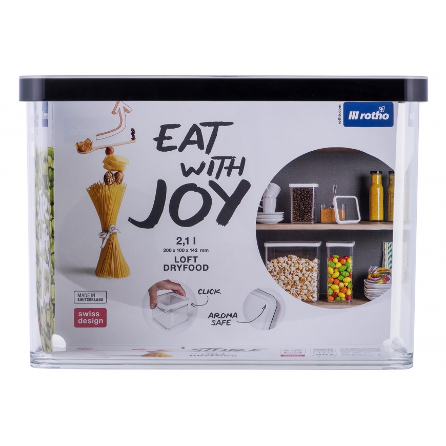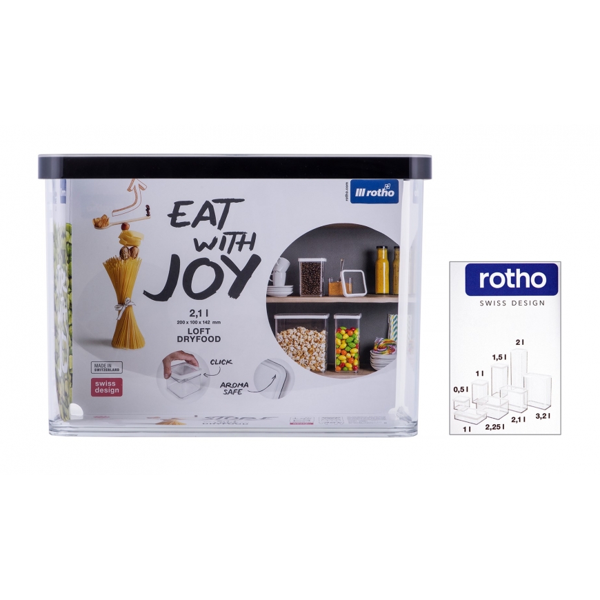 The set includes - 2.1 L ROTHO LOFT premium container, transparent, with a black lid
