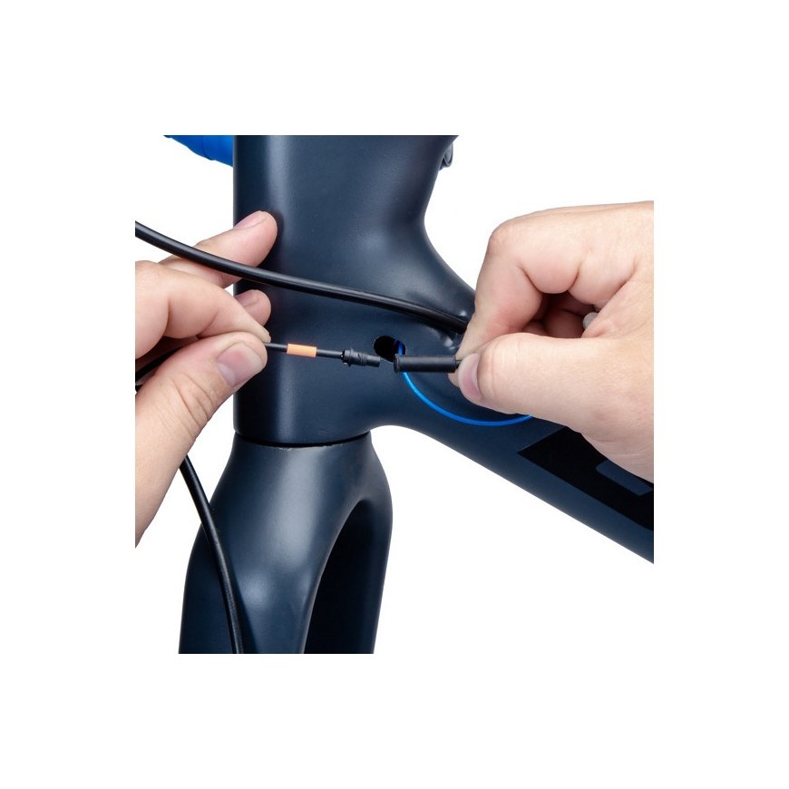 Maksājumi 5x17.80€With this handy set, you make it much easier to pull cable sheaths, cables, brake hoses and electrical wires inside the bike frame. The package contains four plastic-coated cables with magnets and different ends, as well as a strong magnet that guides the cable inside the frame to the right place and smoothly out.