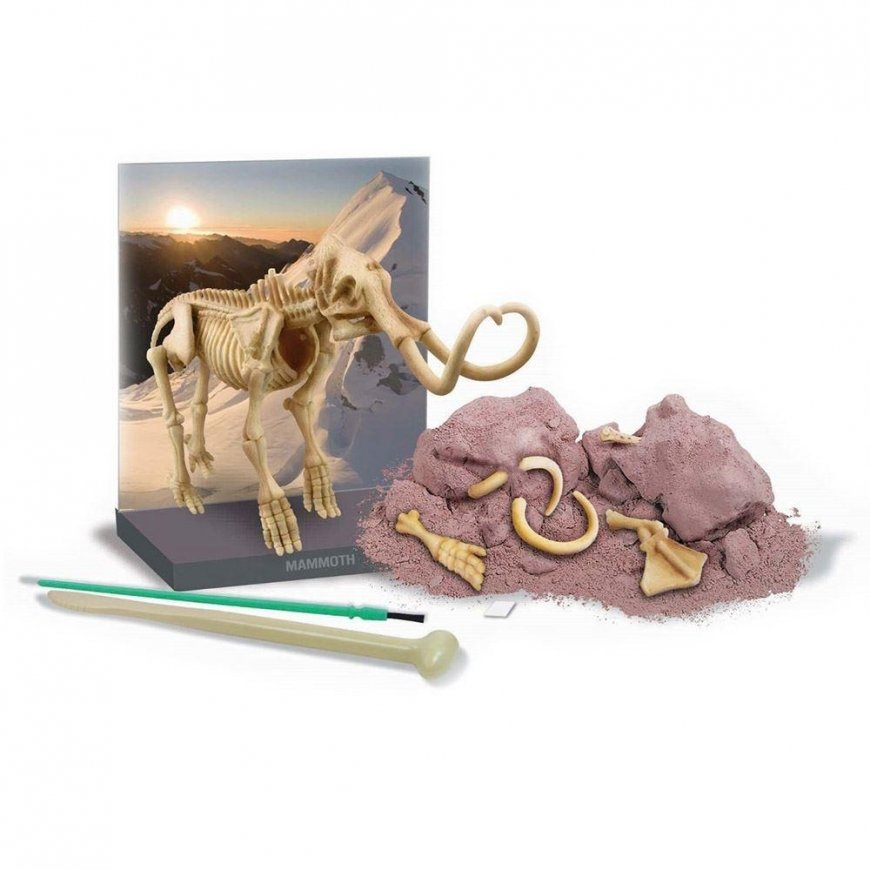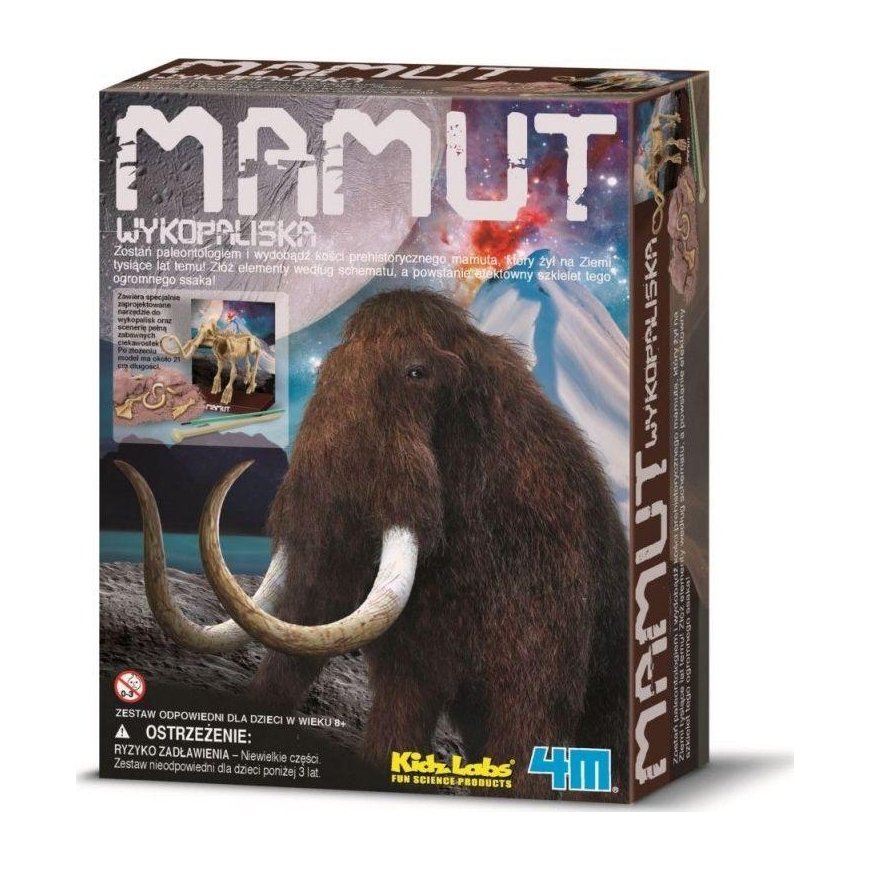 Become a paleontologist and mine the bones of a prehistoric mammal that lived on Earth thousands of years ago. Fold the bones according to the diagram to create an impressive skeleton of a large herbivore. The set includes a plaster block with hidden mammoth bones and digging tools. Once all the bones have been found and cleaned, the entire skeleton can be assembled. The finished height of the skeleton is approximately 21 centimeters. The cardboard display card included in the kit contains a lot of interesting information about the extinct species.