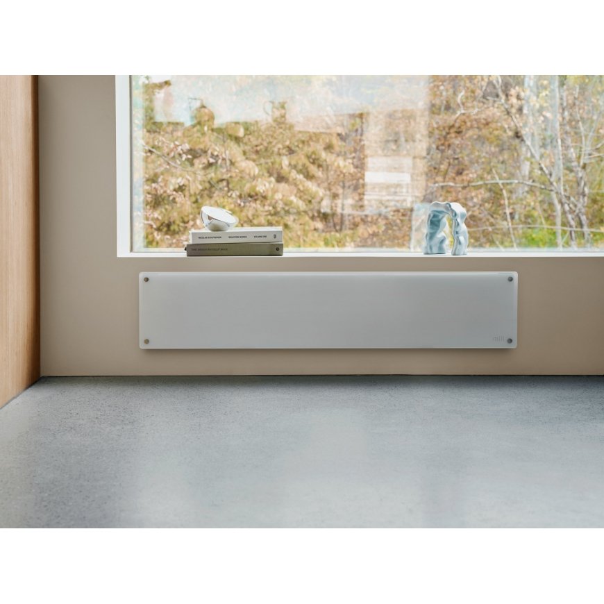 This Mill design heating plate with glass front is suitable for rooms up to 16 m2. It has a power of 1000 W, is 100% quiet and is suitable for installation in the bathroom (IPX4). It has an advanced day and night program that allows you to reduce the temperature when you are not at home. With this feature, you can save up to 25% on electricity consumption. Due to the simple but elegant design with a glass front, many customers will love this device. This model is slightly lower than other Mill plate heaters, making it a great fit under a window.