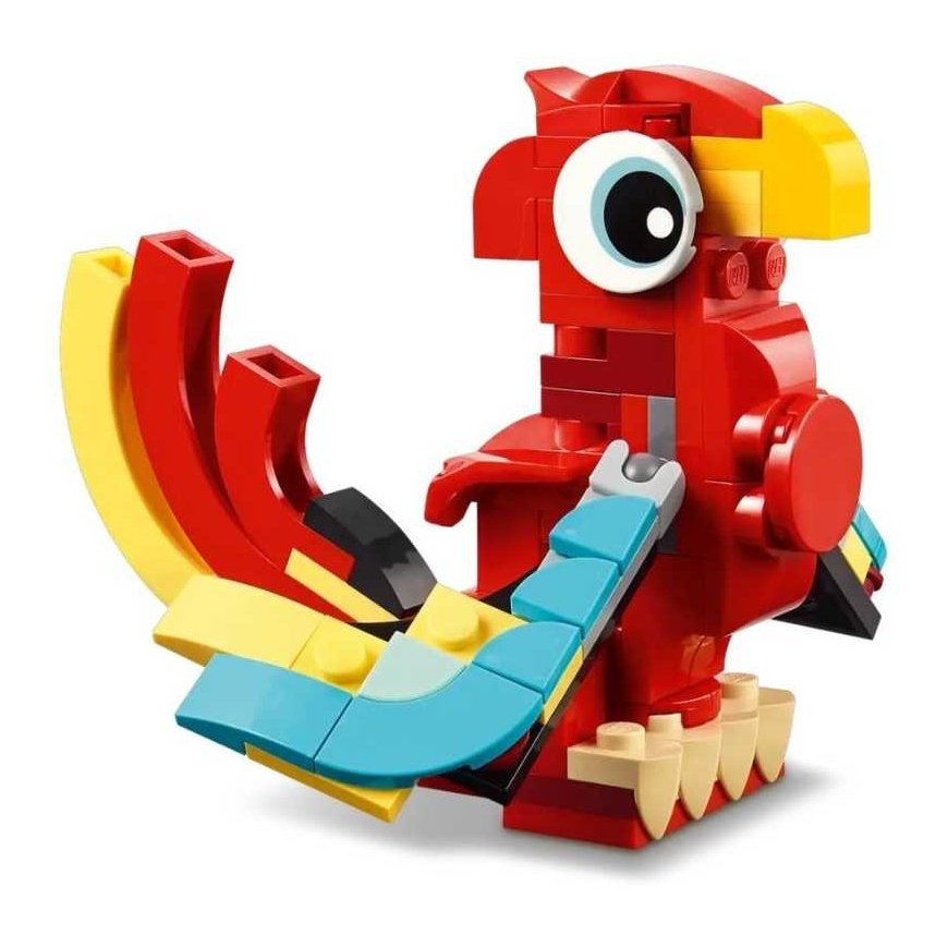 With this LEGO® Creator Red Dragon (31145) animal building set, children aged 6 and up can travel to a magical land full of fun stories. The set includes a friendly big-eyed dragon with flexible arms, wings, legs, feet, head and jaws for kids to play adventure games with and display later.