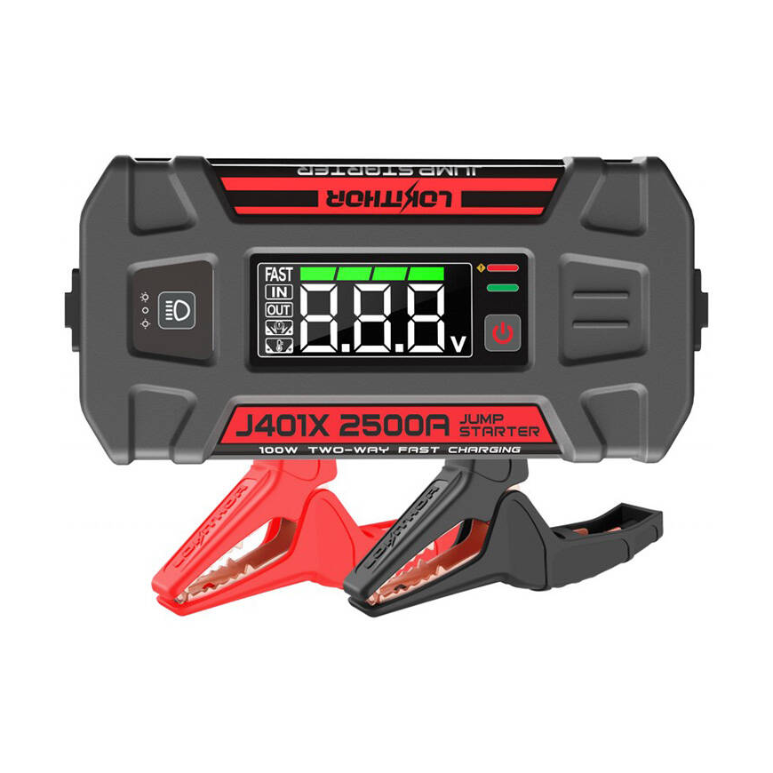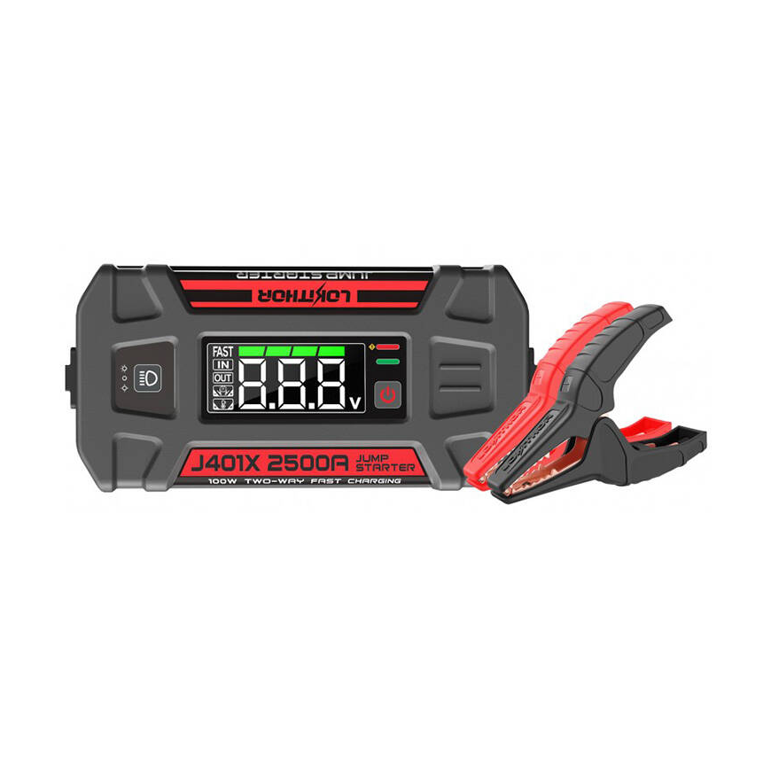 Maksājumi 5x35.40€The Lokithor J401X is a multi-function device that can quickly start up to 8.5 liter petrol engine and 6.5 liter diesel engine using 2500A. It is compatible with 12 volt vehicles and is perfect for travel. It also doubles as a flashlight and power bank.