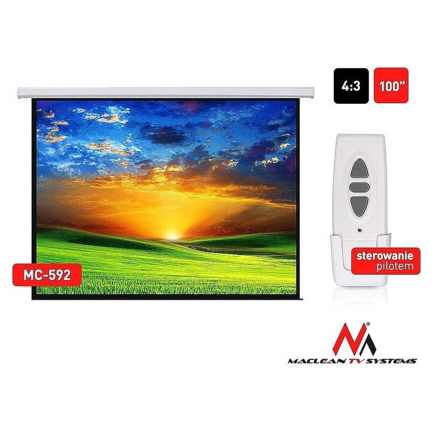 Maksājumi 5x27.91€Projection screen Maclean MC-592 with dimensions of 200x150 cm is ideal for educational applications, sales presentations, arranging film screenings. The robust metal housing.