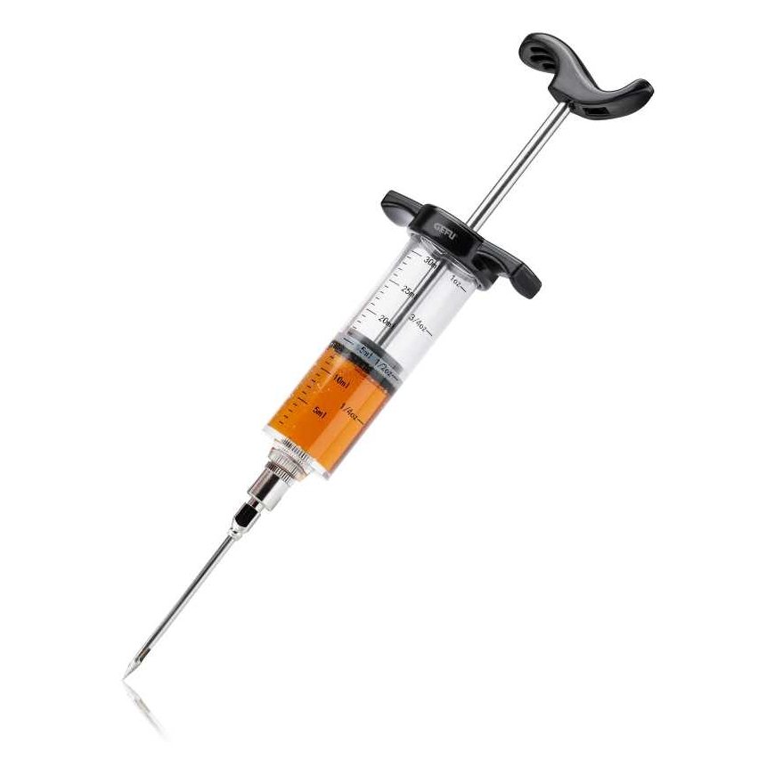 Ja vēlaties marinēt gaļu no iekšpuses, noderēs BBQ šļirce. Vienkārši ielieciet tajā vēlamās garšvielas, ieduriet adatu gaļā un ar pirkstu izstumjiet.
