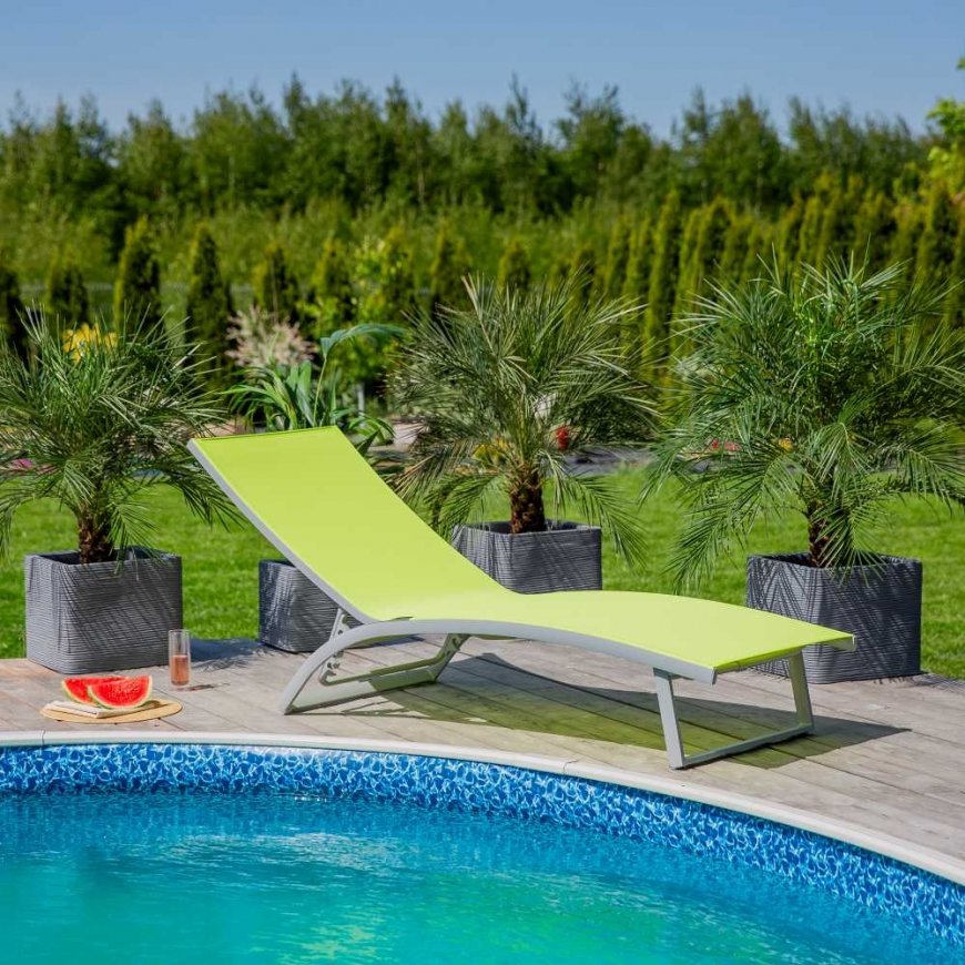 Ergonomic, 5-position bed plażowe Summer z siedziskiem w sławu limonki. Perfect for relaxing on the beach, by the pool or in the garden. Steel bed made of aluminum, wykończony method proszkowa. The construction is light and at the same time durable. The bed can be folded, which will make it easier to move it. Oparcie regulowane jest w 5 pozyczach. . Łóżko posiada koljeczka przesuwania do jego przesuwania. Siedzisko made from very durable textile and splocie 2 x 1, resistant to atmospheric conditions (rain, UV rays) and abrasion. Łóżko uschły do utrzymania w czystości, wystarczy przetrzeć wilgotńą ściereczka.
