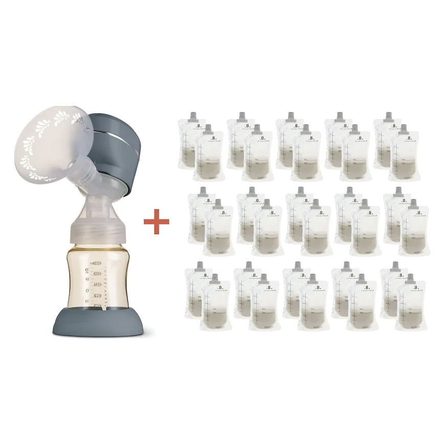 Krūts pumpja komplekts topošajām un jaunajām māmiņām, kuras plāno barot ar krūti. Efektīvi atslauciet pienu ar uzlādējamu krūts pumpi jebkur, kur atrodaties. Mātes piena uzglabāšanas maisiņi ir aprīkoti ar ērtu adapteri, kas ļauj pumpēt pienu tieši maisiņā un uzglabāt to turpmākai lietošanai.