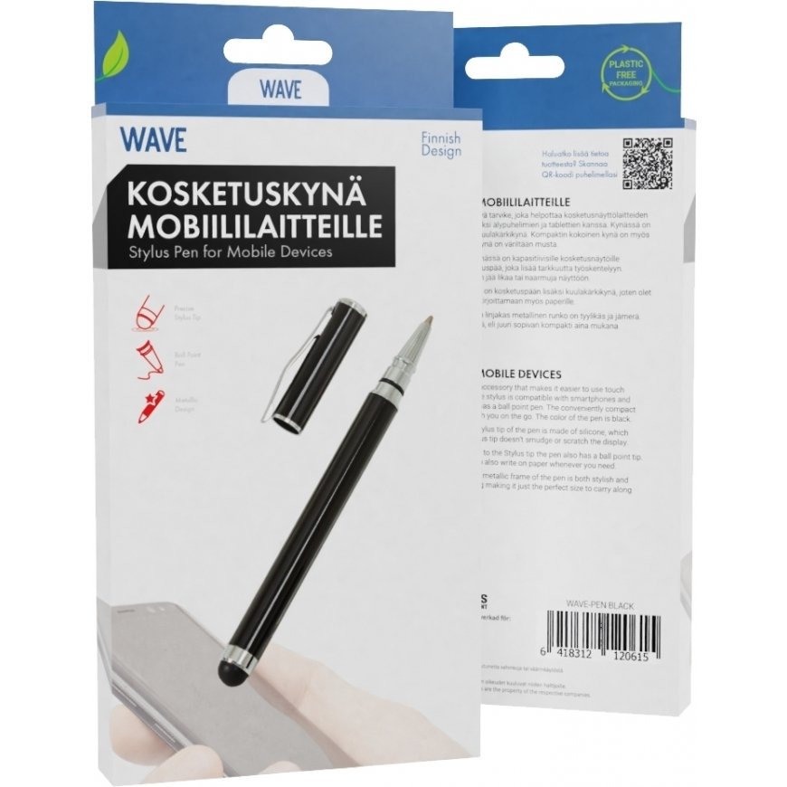 The Wave touch pen is a handy accessory that makes it easier to use touchscreen devices. The pen works with smartphones and tablets, for example. In addition to the touch head, the pen also has a ballpoint pen. The compact-sized pen is also easy to keep in your pocket