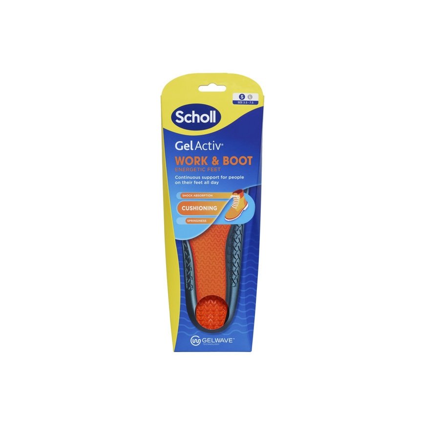 Odor-resistant upper insole fabric keeps feet dry, fresh and cool all day long. Dampens and absorbs shocks that occur when working on hard surfaces. USE: Remove existing shoe insoles; Place the Scholl insoles in the shoes and check their size; If necessary, cut along the line that corresponds to your shoe size; Place the insoles with the black-orange side down. Replace insoles every 6 months or when signs of wear appear. Clean with a warm, soapy cloth (do not soak). WARNINGS: Discontinue use if you experience pain and discomfort or any adverse reaction. Do not use if the skin is damaged or irritated. The suitability of the insoles for the shoe size (depending on the construction of the shoe, the suitability may vary) is given on the side of the package.