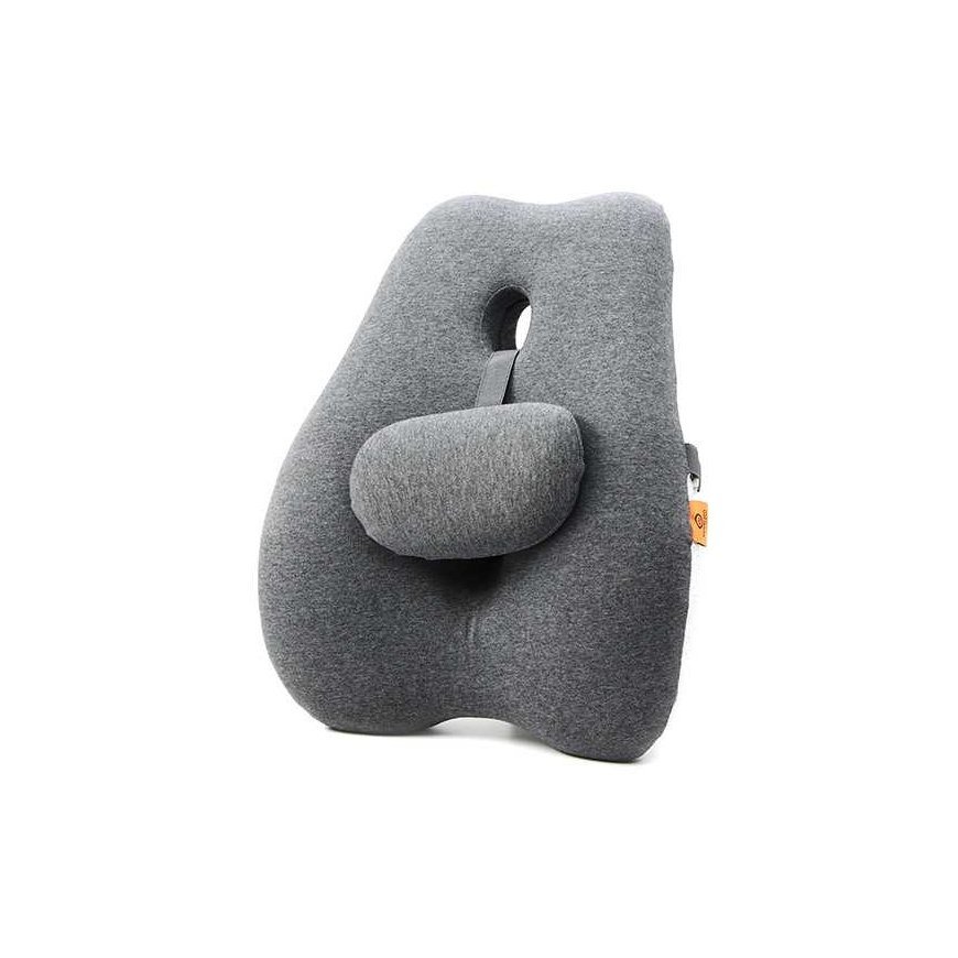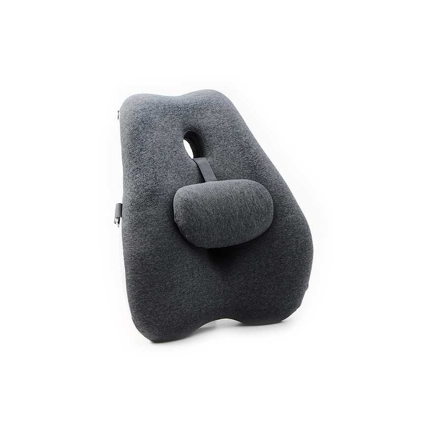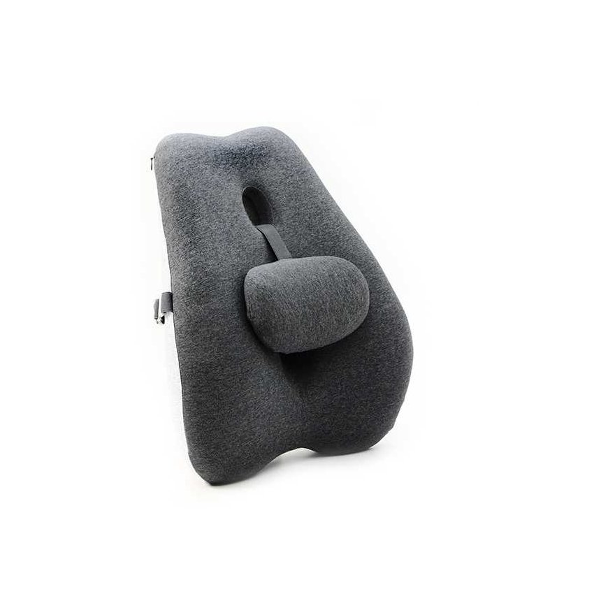Ergonomic lumbar support made of high-quality memory foam ensures comfortable and healthy sitting. The gray design blends perfectly with various interiors. This support helps maintain correct posture and reduces back pain, making it an ideal choice for long working hours or traveling. Easily attaches to a chair, ensuring stability and comfort.