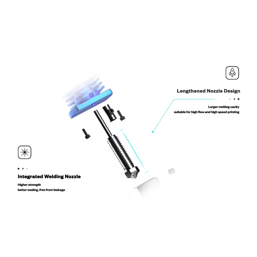Maksājumi 5x27.80€ Copper alloy / hardened steel material, suitable for high temperature, wear-resistant. Comes with a copper-coated Reprap M6 0.4 mm nozzle. The HF version uses an extended nozzle design, which is more suitable for high flow and high-speed printing. Uses a solid welded nozzle, ensuring greater strength and better sealing. The heat break kit has a fixed structure with a side shell surface type: stable and reliable with the ability to quickly change. Longer nozzle and heat block: larger melting chamber, suitable for high flow and high-speed printing. 0.25 mm wall thickness heat break: excellent thermal insulation, does not block plastic. Copper alloy / hardened steel material, suitable for high temperature, wear-resistant. Brass nozzles / hardened steel nozzles / copper-coated nozzles support high temperature, wear-resistant.