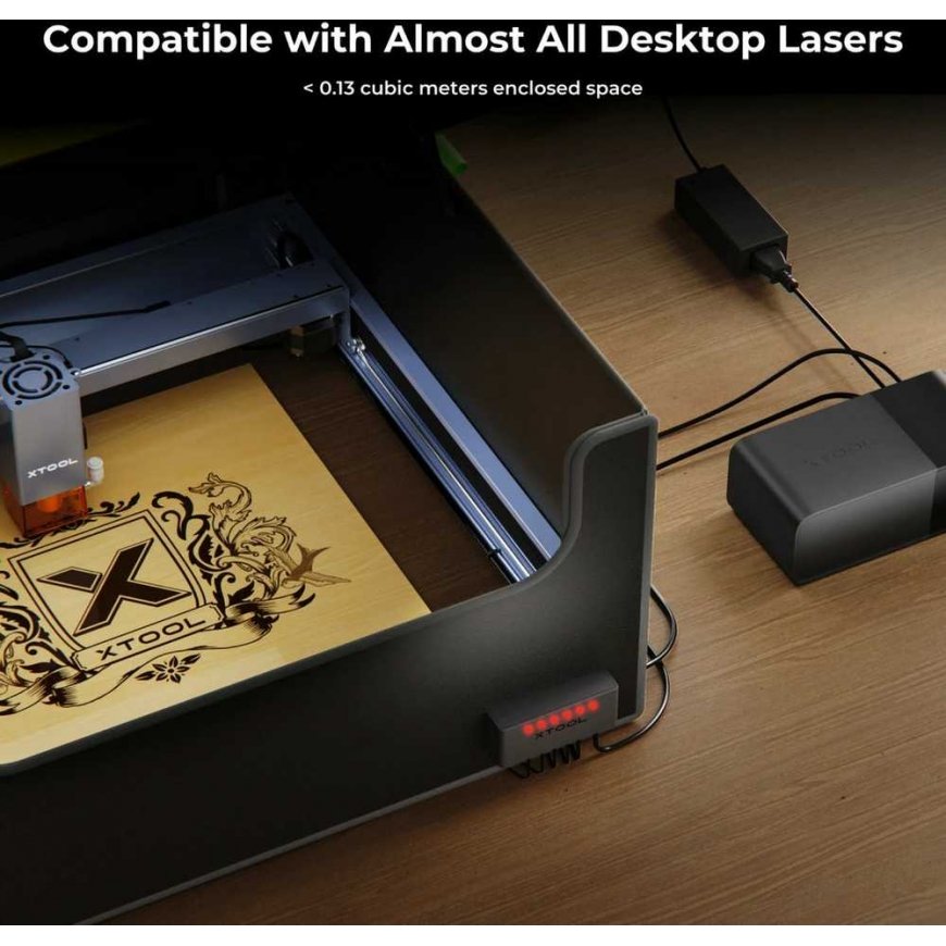 Slēgta iekārta, kuras darba telpa ir līdz 0.13 m3, var darboties ar xTool ugunsdrošības komplektu. (Atcerieties, ka, lai tas darbotos, slēgtajā telpā ir jāievieto gaisa caurule.)