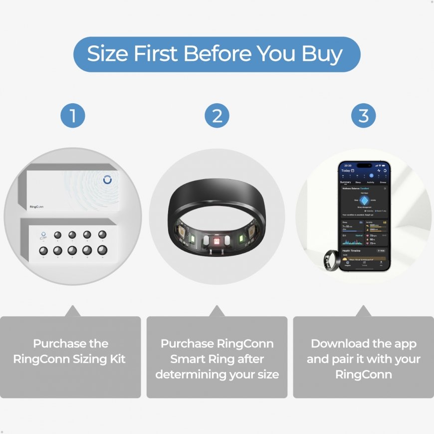 RingConn Gen 2 Sizing Kit. Produkta veids: Sizing kit, Saderīgas ierīces tips: Viedais gredzens, Produkta krāsa: Melns. Iepakojuma svars: 137 g