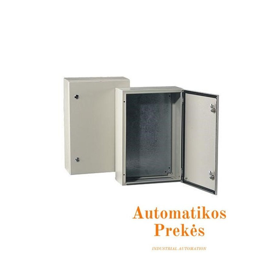Single door wall mount enclosure, sheet steel, IP65. Features:The metal enclosure is intended for connecting and distributing cables and installing electrical devices in residential or industrial premises.Suitable for outdoor conditions, safety class IP65 (resistance to moisture and dust) and IK10 (protection against mechanical impacts).The package includes enclosure with single door and a locking system, zinc-coated device mounting plate, sealing gasket and mounting accessories.The body is covered with epoxy polyester powder coating textured finish, color RAL 7035 - light gray. Technical data:Body material: sheet steel.Installation: wall mount.Safety class: IP65, IK10.Color: RAL 7035 light gray.Height: 300mm.Width: 300mm.Depth: 150mm.Wall and door thickness: 1.2mm.Device mounting plate material: zinc-coated.Thickness of the mounting plate: 2mm.Number of locks: 1.