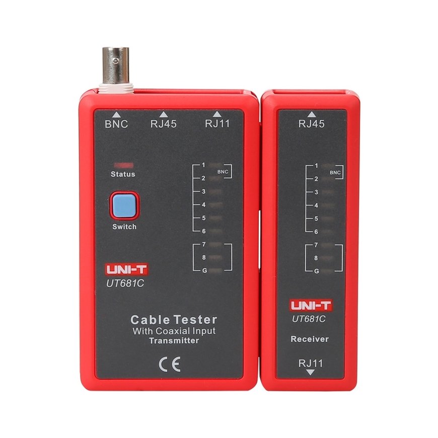 UT681C atbalsta kabeļus, kas aprīkoti ar RJ45, RJ11 un BNC savienotājiem (izmantojot komplektā iekļauto RJ45-BNC adapteri). Tas ļauj ātri verificēt signāla nepārtrauktību un diagnosticēt īsos savienojumus, atvērtos ķēdes un nepareizās pieslēgšanas - ieskaitot krustotās pārus. Iebūvētais LED paneļa (LED1~LED8 un LED_G) ļauj viegli novērtēt individuālo vadītāju stāvokli kabelī, ātrajos un lēnajos testu režīmos.