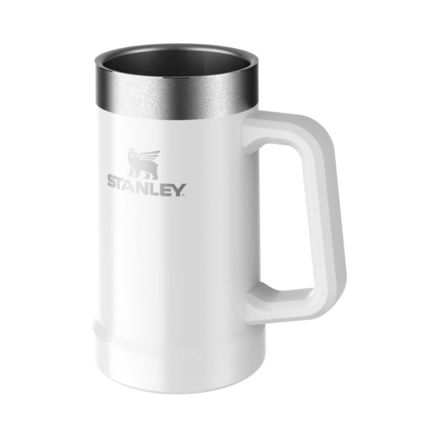 Stanley The Big Grip Beer Stein 0,7 L Spīdīgi Balts ir izturīga vakuuma alus krūze no augstas kvalitātes nerūsējošā tērauda ar dubultām sienām, kas palīdz saglabāt dzērienus aukstus līdz ≈7 stundām un ledusaukstus līdz ≈30 stundām, bet siltus dzērienus līdz ≈1 stundai; aprīkota ar ērtu platu rokturi, BPA‑free un noplūžu necaurlaidīgu konstrukciju, šī krūze ir lieliska ikdienas lietošanai, piknikiem, griliem vai dzērienu baudīšanai ārā, to ir viegli mazgāt trauku mazgājamajā mašīnā, un stilīgais spīdīgais baltais apdare piešķir modernu izskatu.