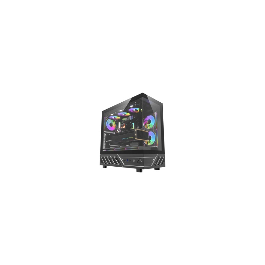 Korpuss ir aprīkots ar divām caurspīdīgām paneļiem bez vertikālā profila, nodrošinot plašu komponentu skatījumu. Šis dizains ļauj radīt interesantus vizuālos efektus – piemēram, varat izcelt RGB ventilatorus vai ūdens dzesēšanu ar displeju. Dāvājiet savai datoram unikālu raksturu!