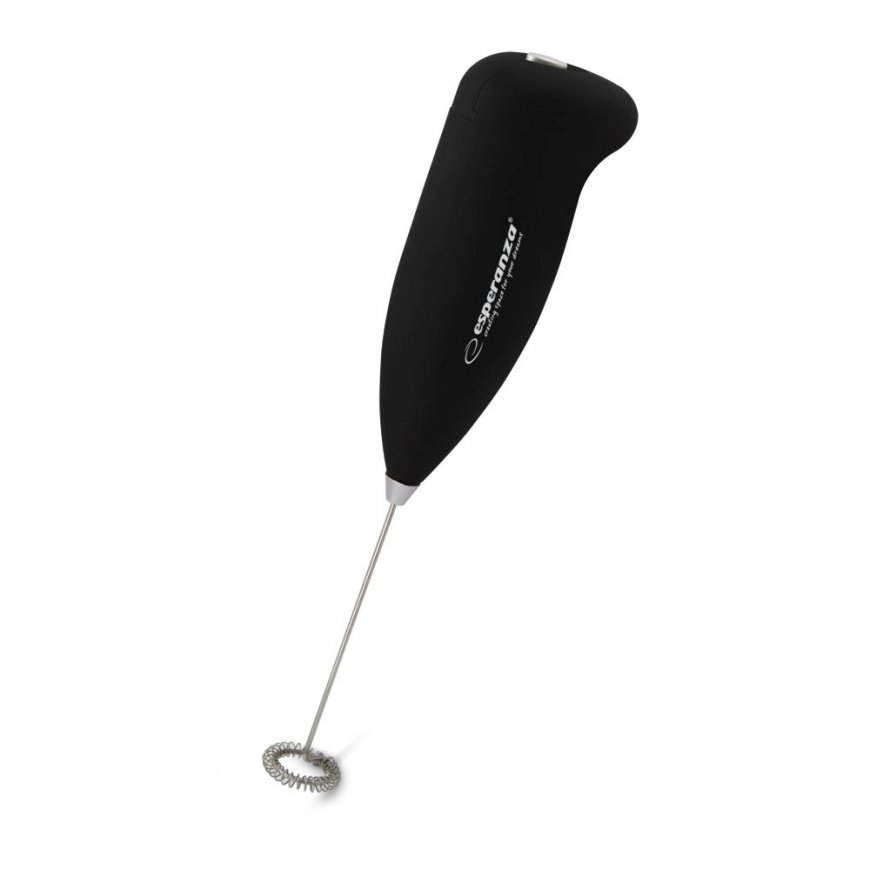 ESPERANZA MINI PIENA PUTOTĀJS LATTE BLACK. Mini piena putotājs Esperanza LATTE ir praktiska ierīce, kas piemērota ikvienai virtuvei. Spirālveida putotāji ir izgatavoti no nerūsējošā tērauda, kas nodrošina to ilgu kalpošanas laiku. Putotājs ļaus dažu mirkļu laikā iegūt lieliskas konsistences piena putas. Padara pienu putojošu Labākais, lai pagatavotu: kapučīno, café latte, piena kokteili Mājās gluži kā kafejnīcā Izmērs: 21,5 cm (L) x 5 cm (W) Enerģijas patēriņš: 2xAA baterijas, nav iekļautas komplektā.