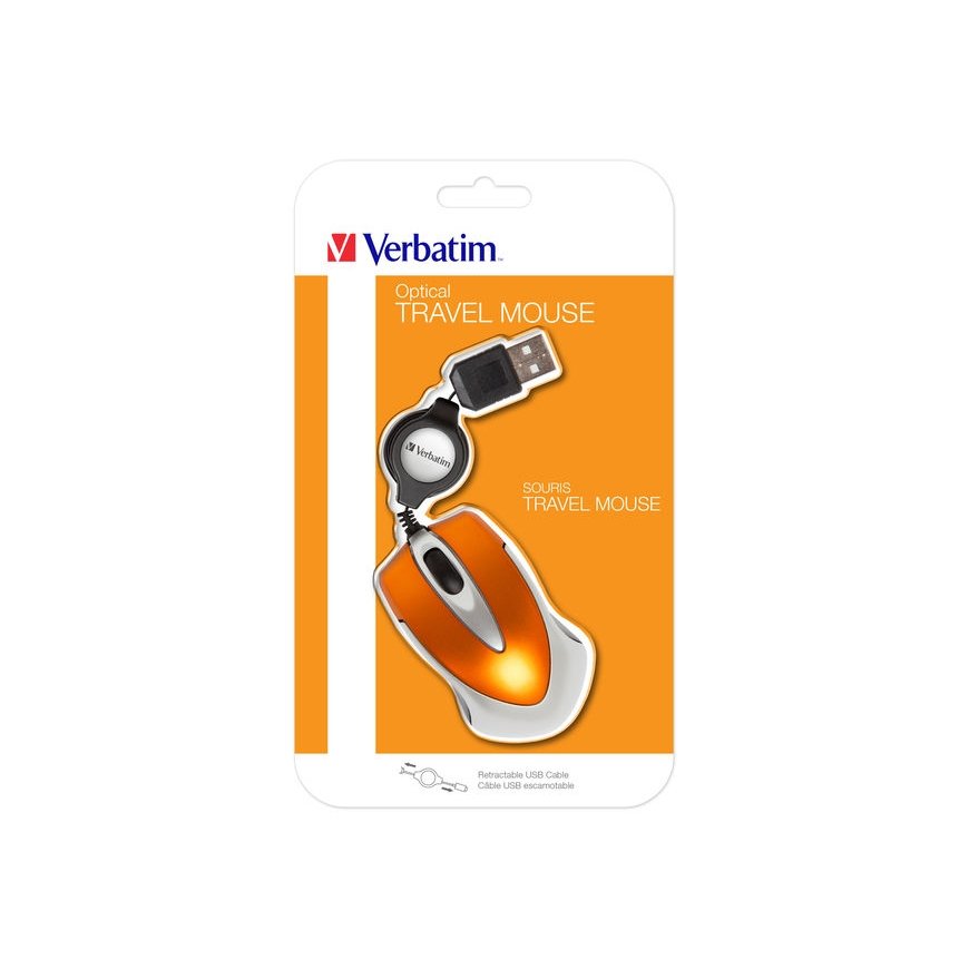 Verbatim Go Mini. Kustības uztveršanas tehnoloģija: Optisks, Ierīces interfeiss: USB Type-A, Kustības izšķirtspēja: 1000 DPI, Pogu skaits: 2, Ritināšanas veids: Ritenis. Produkta krāsa: Oranžs