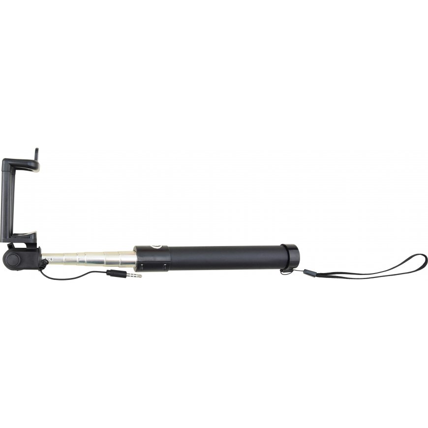 WAVE Bluetooth SELFIETIKKU. Aizvara poga uz roktura, regulējams garums 20 - 90cm. Noslēdzama teleskopiskā roka ar gropi, lai novērstu sānu pagriešanos. Kronšteinā ir kameras skrūve, ko var piestiprināt pie citām kamerām, piemēram, GoPro kamerām (nepieciešams pats GoPro stiprinājums).