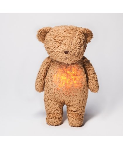 Moonie The Humming Friend soothes a small child with gentle sounds and lights, and makes it easier to fall asleep. The wonderfully soft sleeper responds to the child’s crying by automatically activating the relaxing Sounds of Nature; court, wind, forest stream, sea and rain. The sounds will silence on their own after 30 minutes, as the sleep toy enters standby mode. Moonie The Humming Friend can also be used as a night light to ease a child’s fear of darkness. The module placed on the teddy bear mass glows light beautifully through the soft fur. It contains 5 different lights; mood, glowing, changing color, selected color, and selected glowing color. The rechargeable sound / light module can be removed for washing the teddy bear.