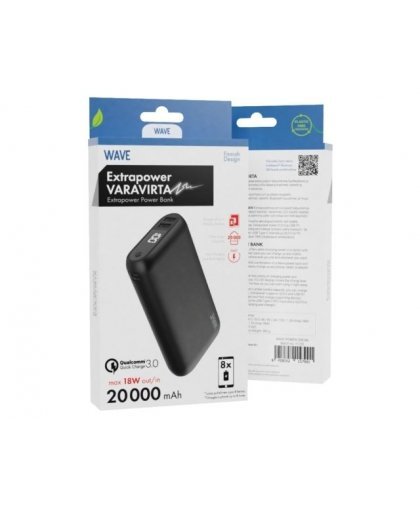 With Extrapower's ample battery capacity, you can charge your smartphone up to eight times. Extrapower supports QC3.0 and USB PD fast charging standards and charges your fast-supporting devices extra-fast. It also charges quickly if you use its USB Type-C connector and a QC3.0 or PD compatible quick charger (e.g. Wave 18W quick charger mains charger).