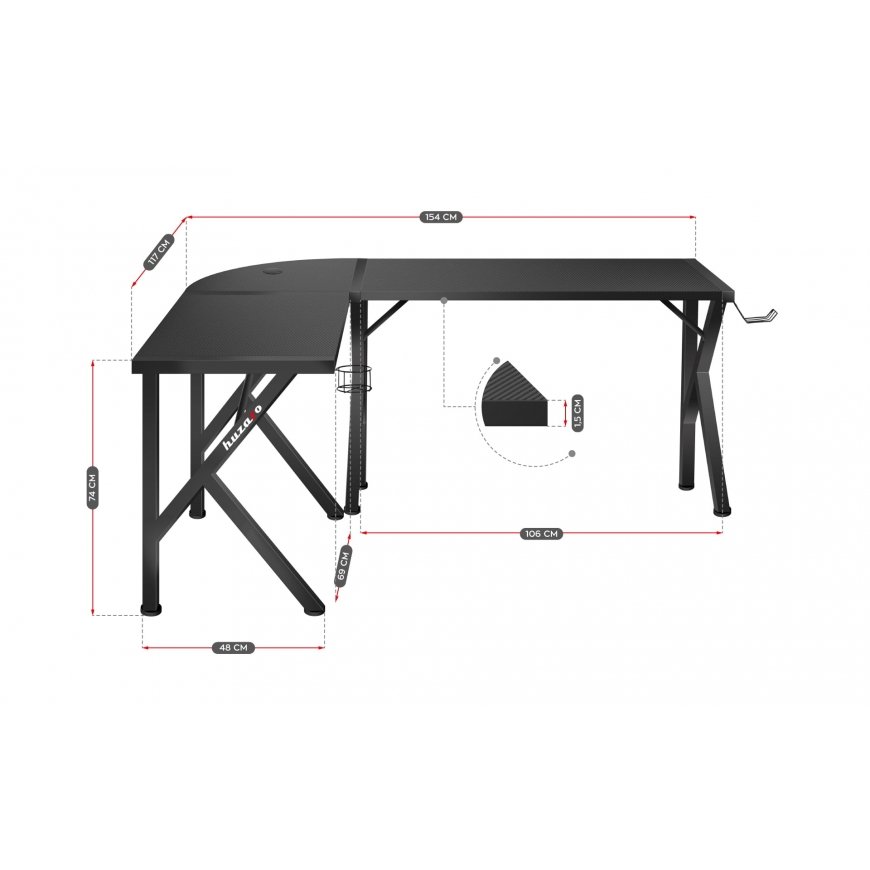 | Форма верхней поверхности стола | L-образный |